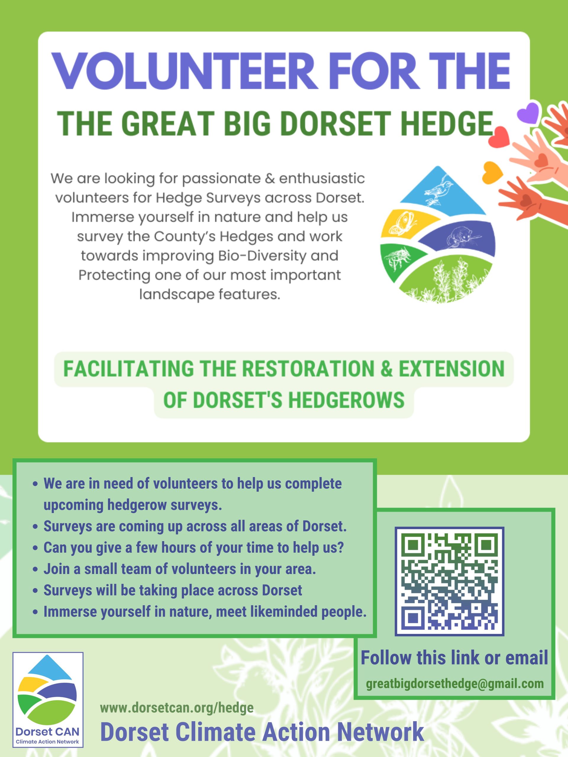 Volunteers from Shaftesbury and Gillingham are being sought by Dorset Climate Action Network (DCAN) to help restore and extend hedgerows throughout the north Dorset area as part of its Great Big Dorset Hedge (GBDH) project.